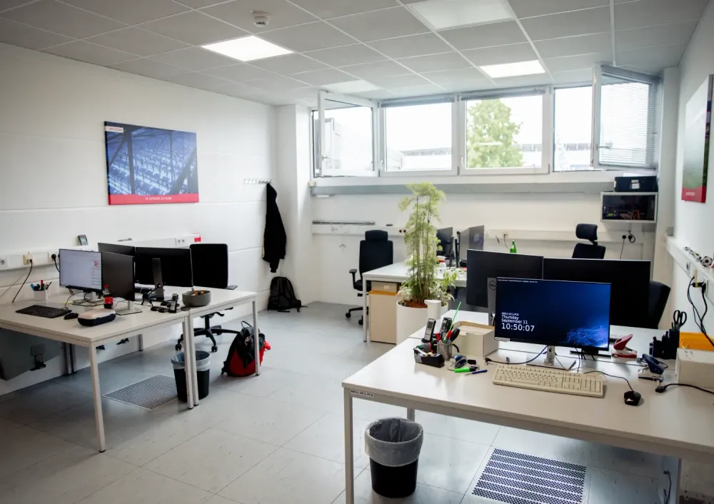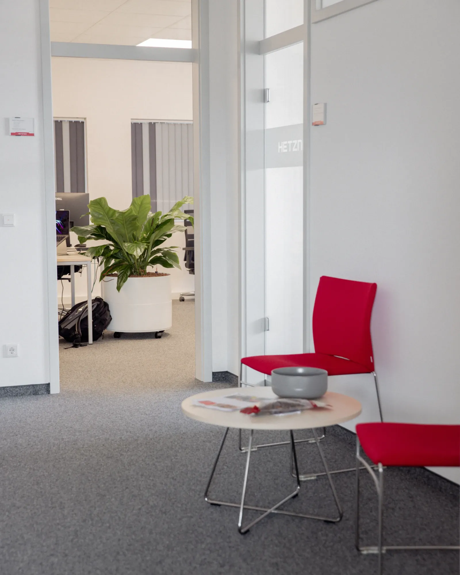 In Nürnberg betreiben wir einen kleineren, aber hochmodernen Datacenter-Park, der über 70 Mitarbeitenden ein Zuhause bietet. Ein Teil arbeitet direkt in den Rechenzentren, andere in Büros, die in die Gebäude integriert sind. Diese ermöglichen konzentriertes Arbeiten und nutzen zugleich die Energieeffizienz des Standorts, indem selbst die geringe Abwärme der Rechenzentren zur Beheizung beiträgt. Trotz des technischen Umfelds herrscht hier eine familiäre Atmosphäre: Jedes Datacenter ist Arbeitsplatz für ein kleines Team von etwa zehn Kollegen. Ergänzt wird das durch viele Vorzüge wie eine abwechslungsreiche Kantine, kostenlose Grill-Events, eine Kaffee- und Teeküche, ein großes und immer gefülltes Getränkelager, ergonomische Arbeitsplätze mit Stehschreibtischen und Pflanzen und einen offenen Teamgeist, der Nürnberg zu einem besonderen Hetzner-Standort macht.