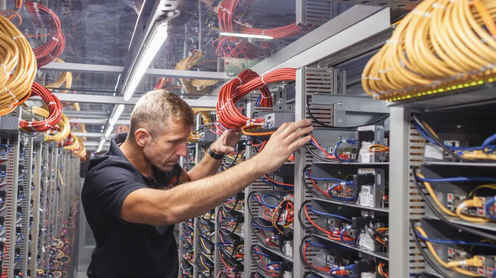 An vielen Stellen optimieren wir gezielt: Unsere selbst entwickelten Rechenzentren sind in ihrer Bauweise – etwa durch das charakteristische schräge Pultdach – energieeffizient gestaltet. Zudem bauen wir auch unsere Server selbst und optimieren sie hinsichtlich ihrer Effizienz. Unsere Server kühlen wir zu 98 Prozent des Jahres ausschließlich mit Außenluft und die Abwärme nutzen wir zur Beheizung unserer Büro- und Produktionsräume. Zudem legen wir großen Wert auf langlebige Hardware und optimierte Prozesse, um Ressourcen so nachhaltig wie möglich einzusetzen.